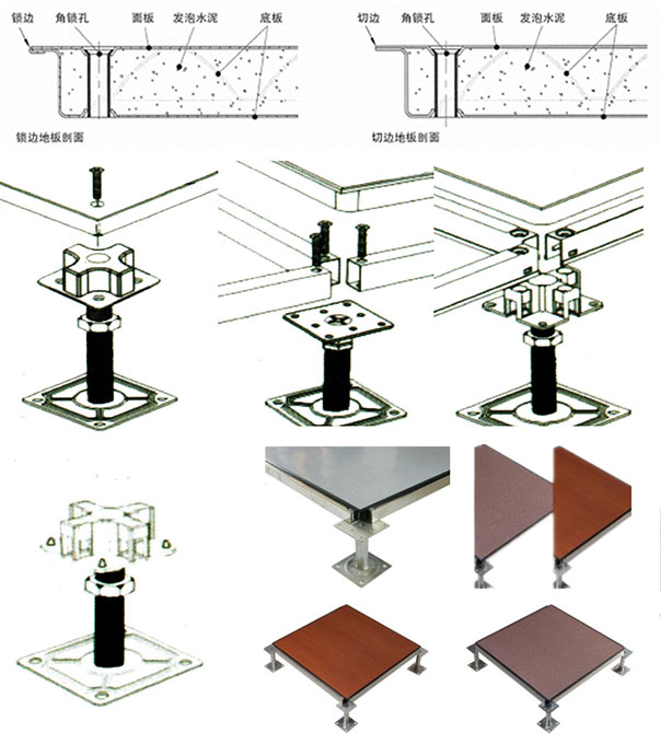 承载力大、抗冲击性强; 内部填充特制泡沫水泥,踏感舒适稳定,吸音隔热防火性能好; 所有原材料均有优质抗静电性能,使地板系统性能稳定可靠;